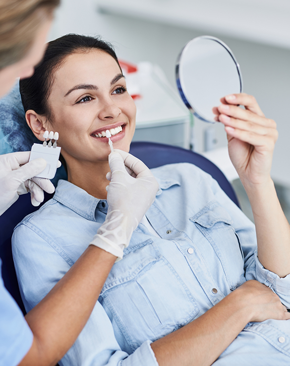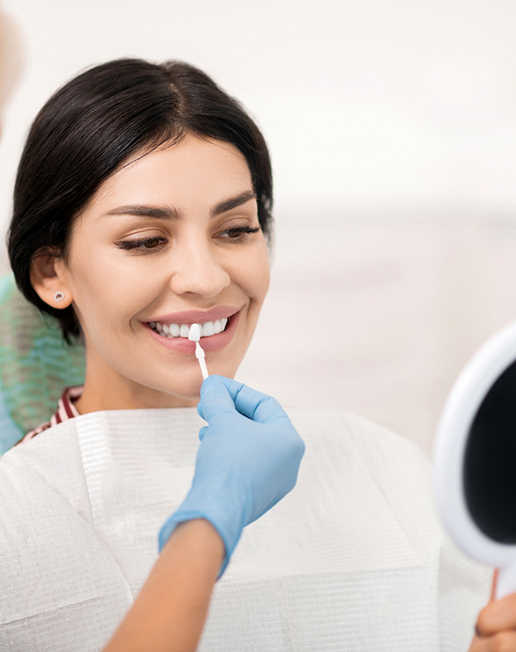 If your smile could use a comprehensive overhaul, consider porcelain veneers. These handcrafted, highly aesthetic dental restorations permanently cover front teeth and improve the shape, color, and overall appearance of a smile. In most cases, porcelain veneers can be placed in only two visits - they're the cosmetic solution of choice for busy professionals and patients unlikely to wear braces or Invisalign. In addition to improving the appearance of your smile, porcelain veneers will resist stains, and they can last for decades.